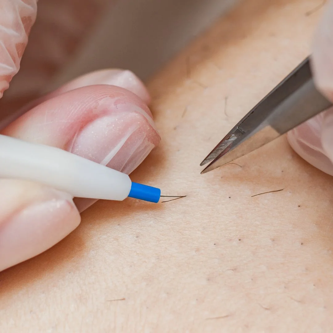 Our electrolysis treatments target and eliminate unwanted hair on your back, chest, neck, under arms and other body areas, ensuring smooth, hair-free skin for life.